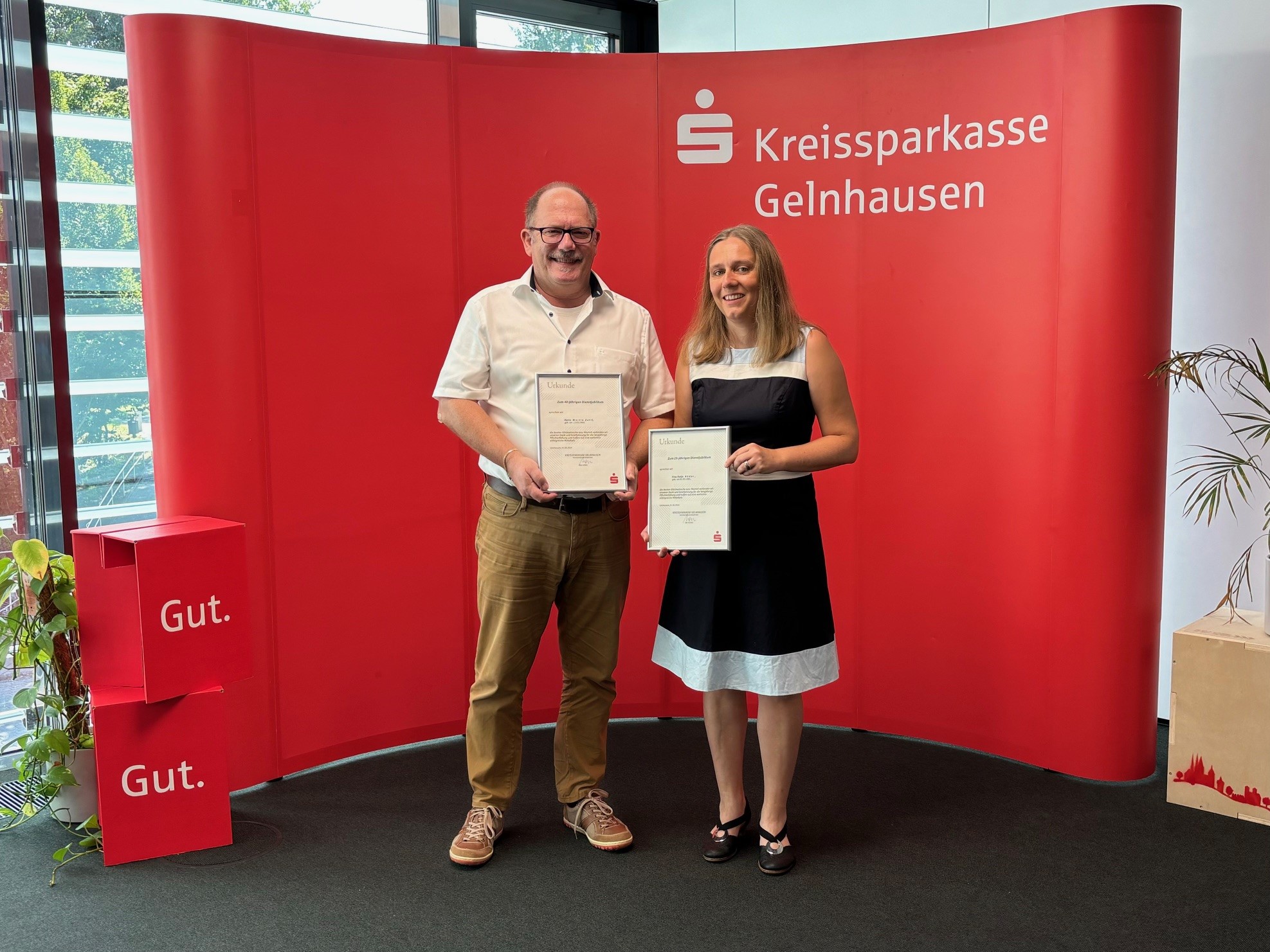 Dienstjubiläen gefeiert – Kreissparkasse Gelnhausen ehrt Katja Röder und Martin Zettl